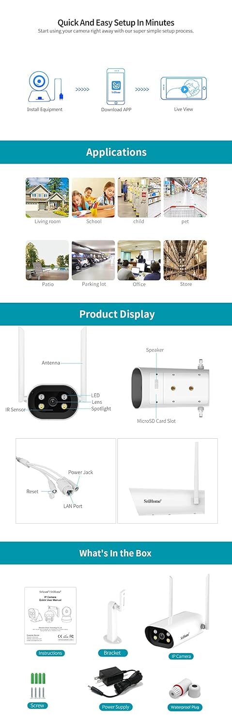 - Waterproof & Dual Band Wifi: The security outdoor camera is equipped with an ip66 rated weatherproof outer casing, designed to operate the camera even in extreme weather conditions. This camera works with both 2.4 & 5 GHZ Wifi Bands.